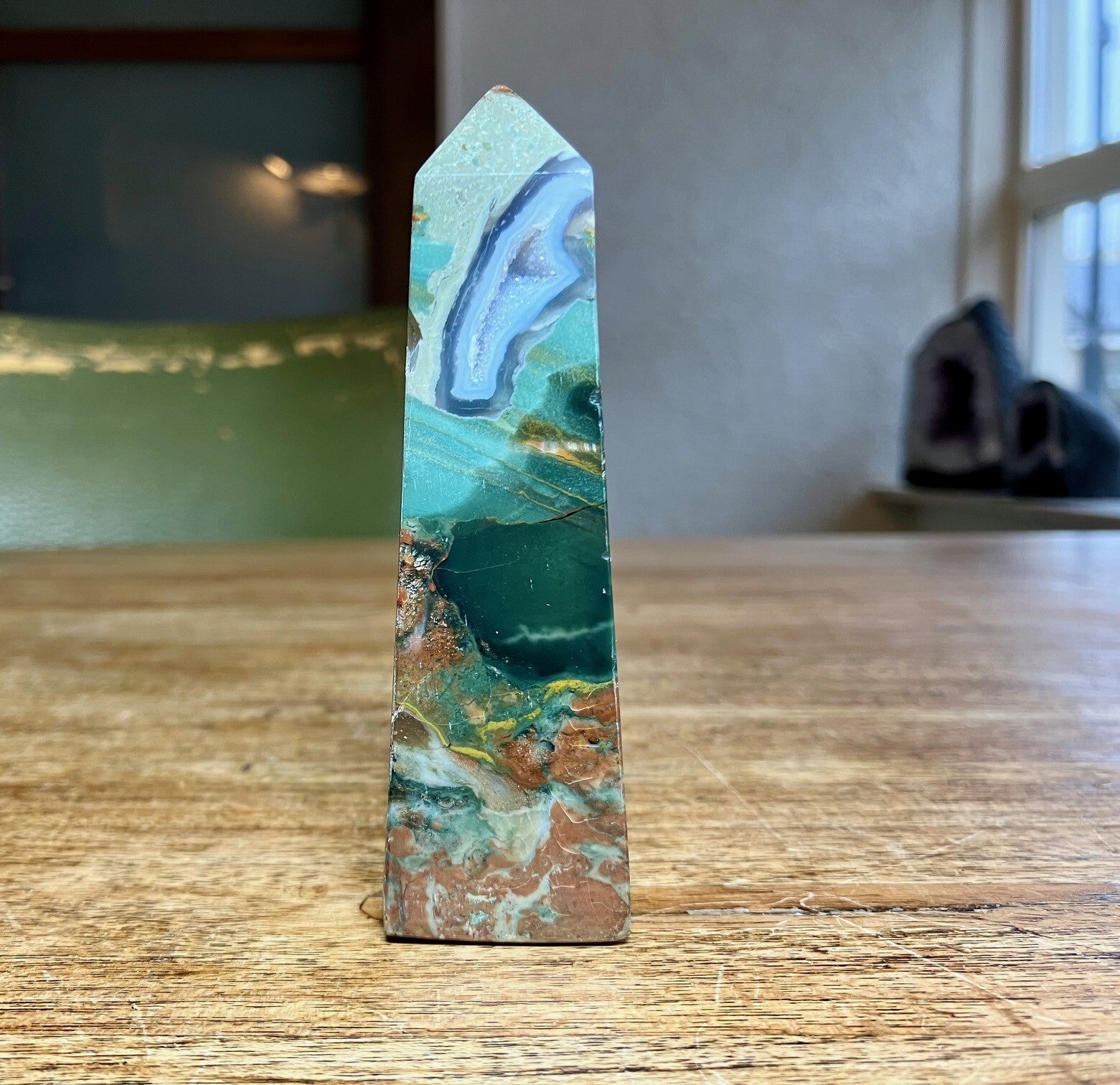Je ontvangt de toren van de foto. Leuke kleur combi met mosagaat bol 5.