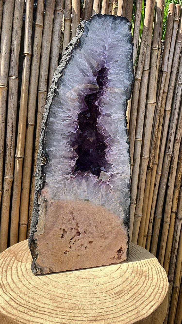 Deze amethist Geode is een combinatie van amethist met roze amethist. Zet er een bergkristal bij om de Golden amethist set te creëren. Deze Geode brengt rust en zuivering. Ze helpt je alle lagen van jezelf te accepteren en kalmeert je emoties. Zet deze Geode op een mooi plekje neer in huis en geniet elke dag van haar liefdevolle energie.
