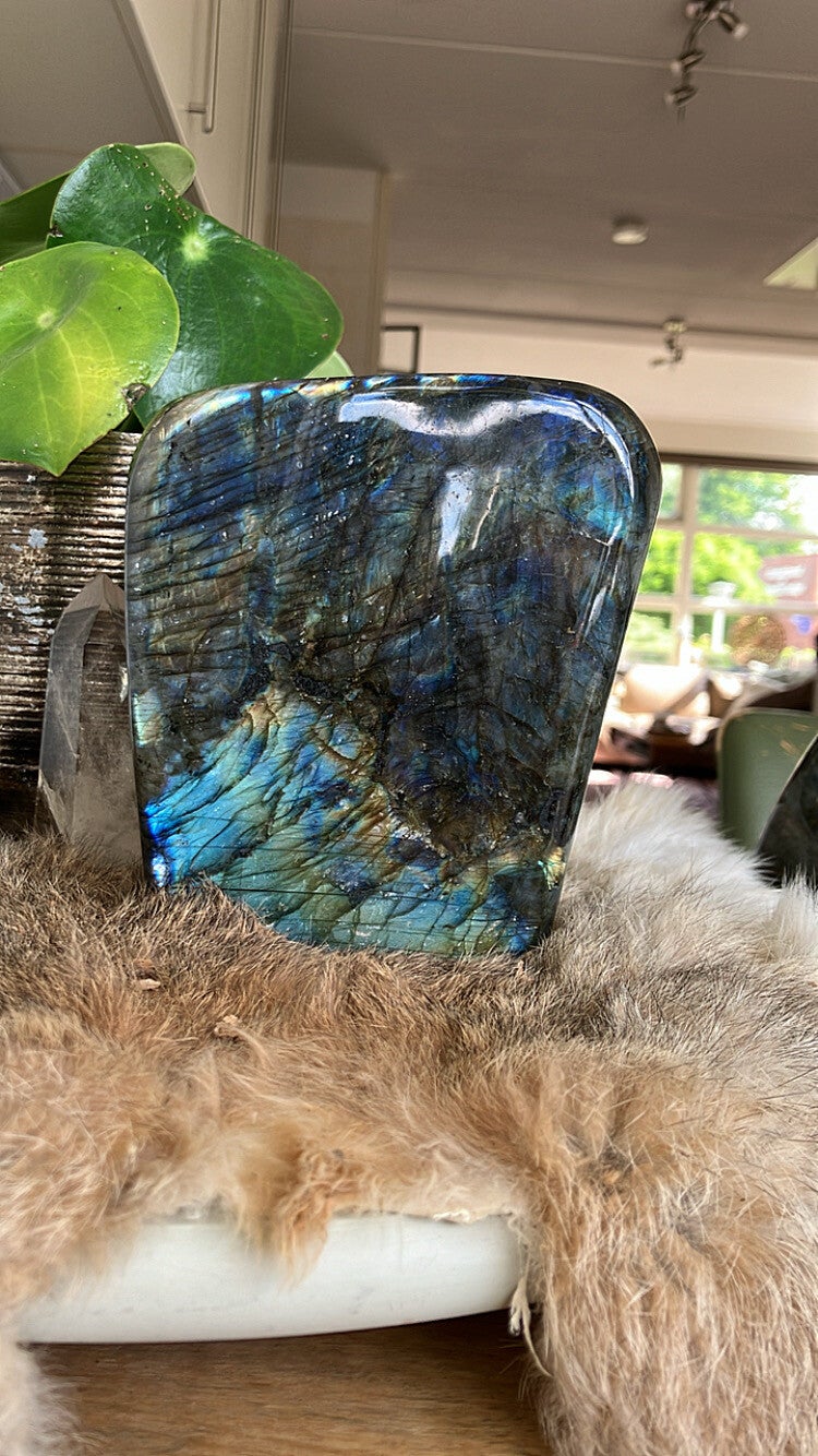 Labradoriet werkt beschermend en ondersteunt bij het afvoeren van negatieve energie. Zorgt dat je in je eigen energie kan blijven en houdt de energie van anderen en de omgeving buiten.
