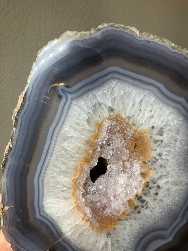 Afmeting 23 x 18 cm. Gewicht 556 gram. Je ontvangt de agaat schijf van de foto.