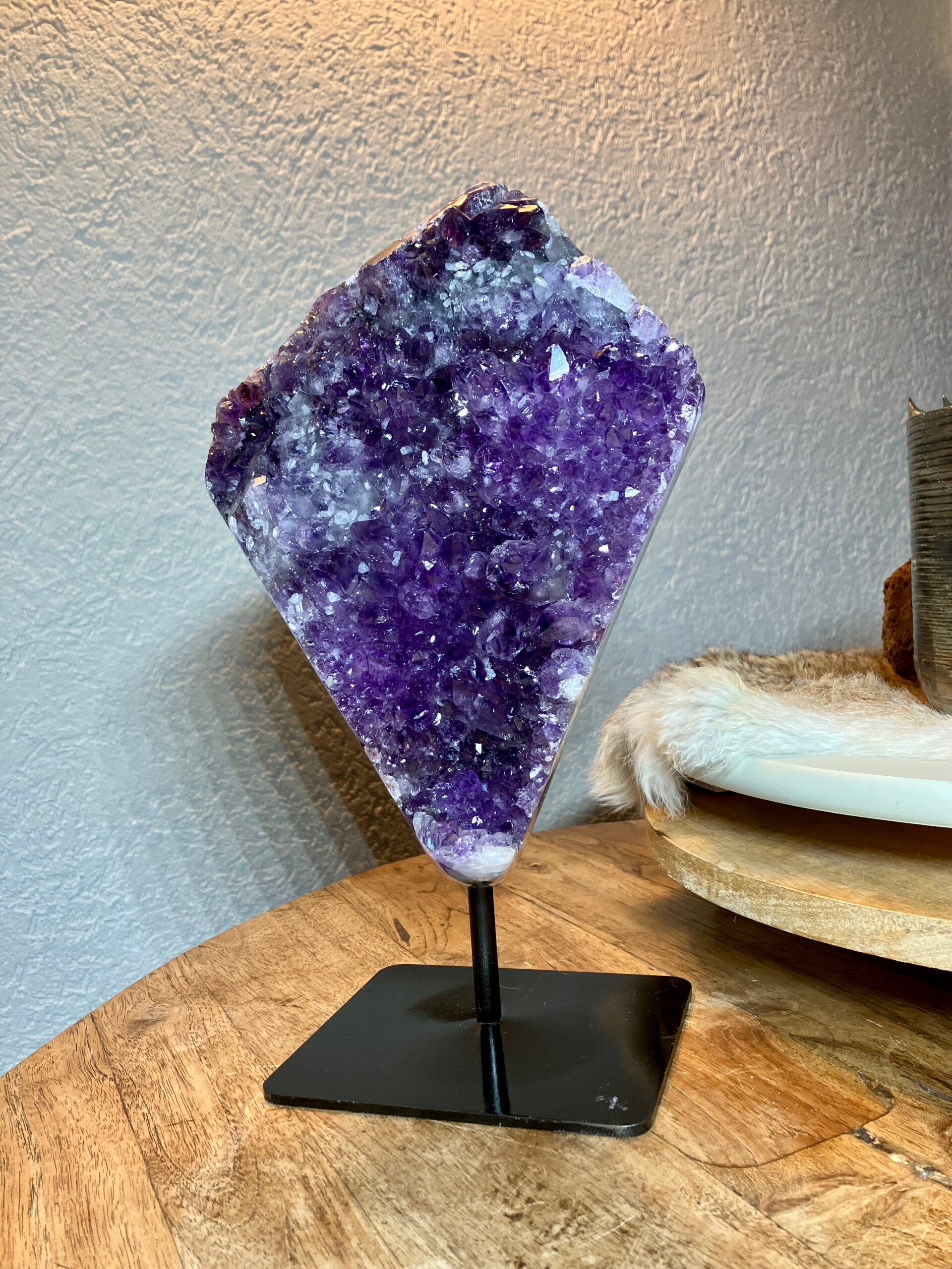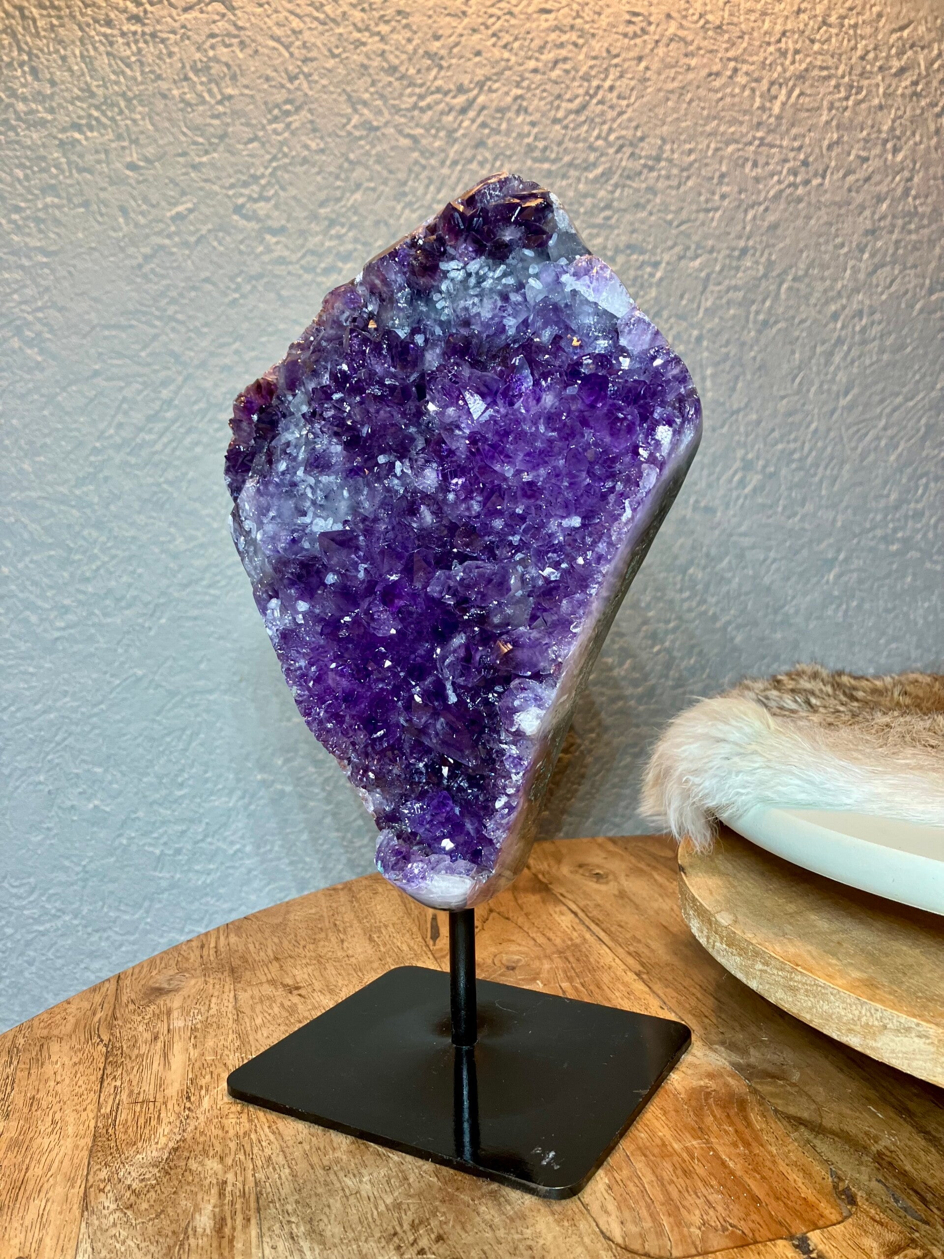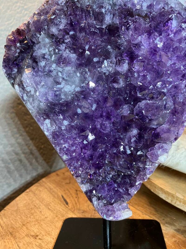 Mooie paarse kleur met fijne kristallen. Totale gewicht 5,65 kilo. Hoogte 32 cm. Breedte 21 cm. Dikte 8 cm. Je ontvangt het stuk van de foto.