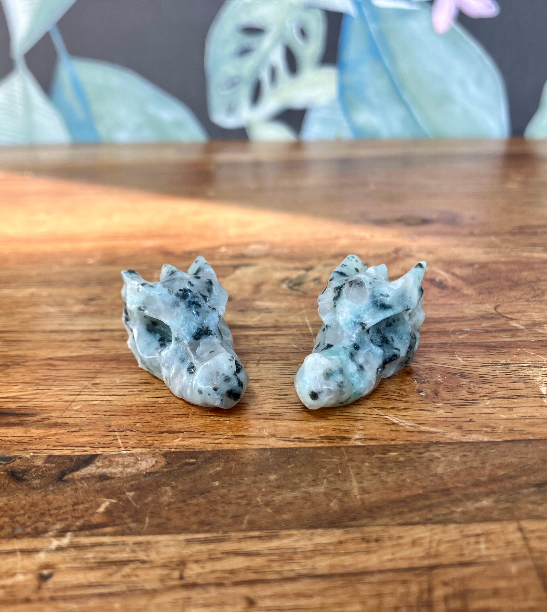 Kiwi jaspis mini drakenschedels
